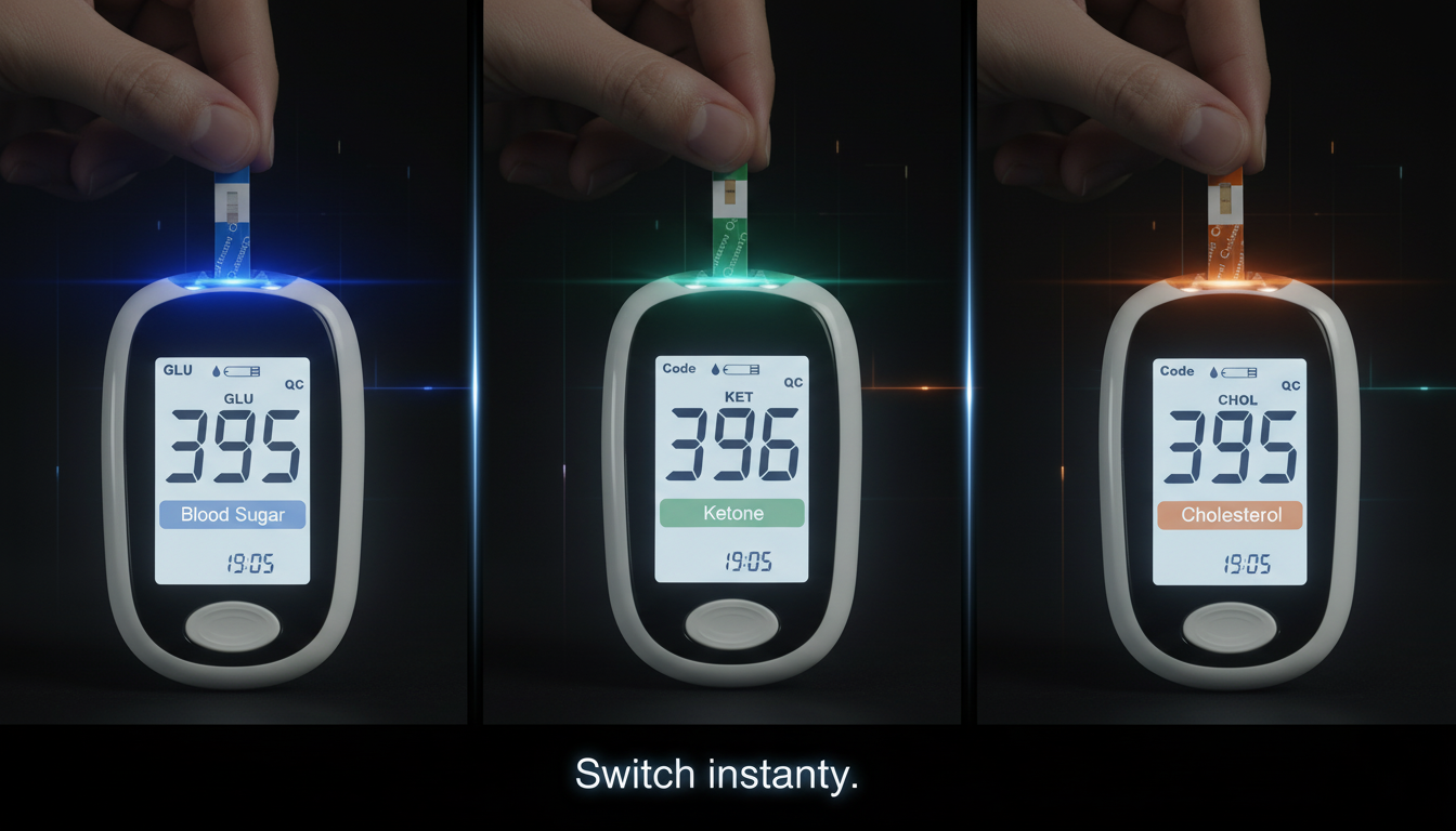 One device, three critical numbers. Track blood sugar, cholesterol, and ketone in minutes, right from home